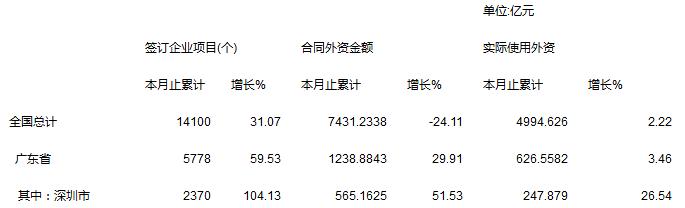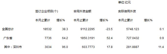 2023年1-5月,广东省实际使用外资金额727.0亿元,同比增长0.9%;新设外商投资企业7736个,同比增长64.2%。