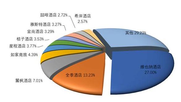 中国饭店业协会数据显示,截至2021年1月1日,国内中端连锁酒店品牌方面,维也纳酒店、全季酒店、麓枫酒店、如家商旅、星程酒店、桔子酒店、宜尚酒店、雅斯特酒店、喆啡酒店、希岸酒店。