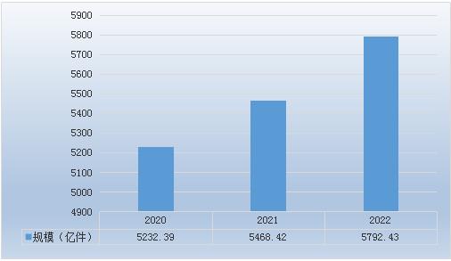2020-2022年汽车金属零部件镀锌市场规模由5232.39亿件上升到5792.43亿件。