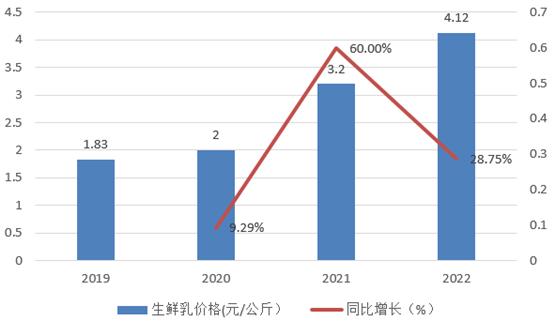 2022年内蒙古、河北等10个主产省份生鲜乳平均价格4.12元/公斤。生鲜乳主产省份统计范围:河北、山西、内蒙古、辽宁、黑龙江、山东、河南、陕西、宁夏、新疆。