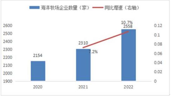 图表:2020-2022年中国海洋牧场企业数量
