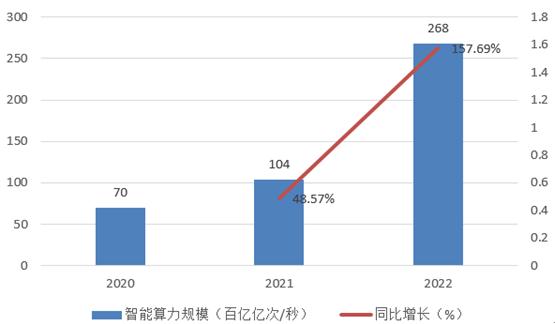 图表:2020-2022年智能算力规模