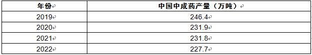 根据相关数据,2020-2022年我国中成药材产量情况如下表所示: