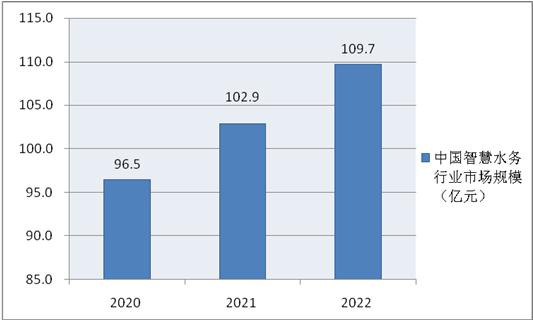 图表:2020-2022年中国智慧水务行业市场规模(单位:亿元)