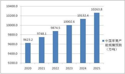 图表:2020—2025年我国苹果行业产能预测(单位:万吨)