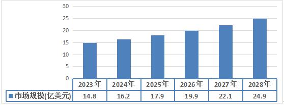 图表:2023-2028年全球高端弥散供氧设备行业市场规模预测