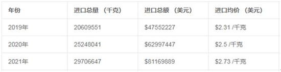 根据中国海关数据,2019-2021年,中硼硅玻璃的进口数量、进口金额和进口均价都呈现出增长的趋势。