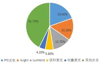 企业市占率:从半导体激光器企业角度来看,当前国内市场中的大部分参与主体主要来源于欧美等发达国家和地区,比如IPG光电、nLight和Lumibird等外资企业凭借技术和人才等方面的优势,长期占据着半导体激光器市场的多数份额,根据行业研究公司的分析报告显示,2022年,IPG光电、nLight和Lumibird三家企业的市场占有率分别为19.6%、15.2%和12.7%,在本土企业中,锐科激光和创鑫激光占比较其他企业高,2022年两者分别占比5.6%和4.2%。