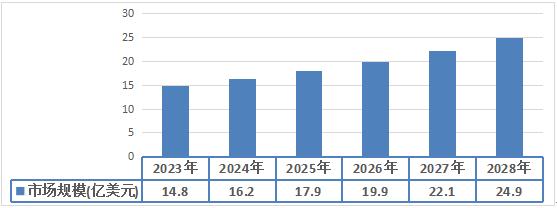 图表:2023-2028年全球高端弥散供氧设备行业市场规模预测
