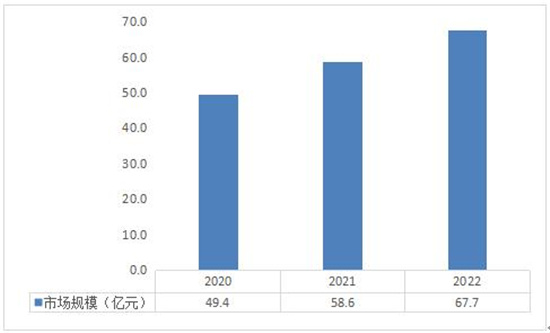 得益于国内国学文化的兴起以及中国在全球影响力提升而带来的海外市场需求的增长,国内汉服行业市场规模由2020年的49.4亿元增长到2022年的67.7亿元,三年间增长了18.3亿元,三年间的年均复合增长率达12.35%,汉服市场的“火爆”由此可见一斑。