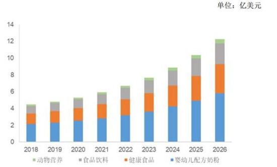 随着人们对于DHA生理功能作用认知的逐步加深,DHA被作为一种功能性成分越来越广泛地应用于健康食品、婴幼儿配方食品、制药以及动物饲料添加剂等领域,推动了全球DHA产业的快速增长。