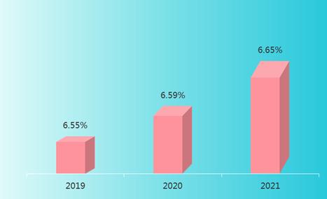 2019-2021年中国智能制造行业利润率由6.55%上升到6.65%。