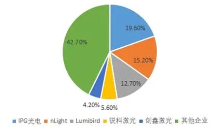 企业市占率:从半导体激光器企业角度来看,当前国内市场中的大部分参与主体主要来源于欧美等发达国家和地区,比如IPG光电、nLight和Lumibird等外资企业凭借技术和人才等方面的优势,长期占据着半导体激光器市场的多数份额,根据行业研究公司的分析报告显示,2022年,IPG光电、nLight和Lumibird三家企业的市场占有率分别为19.6%、15.2%和12.7%,在本土企业中,锐科激光和创鑫激光占比较其他企业高,2022年两者分别占比5.6%和4.2%。