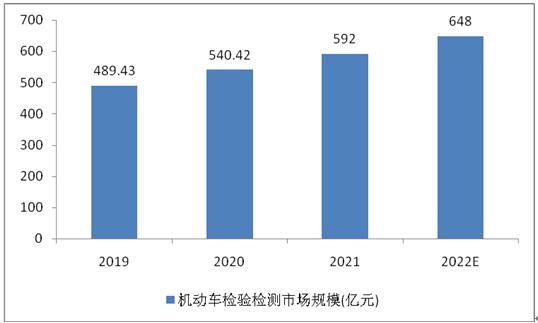 随着我国二手车市场的快速发展,以及消费者对汽车安全性的认知持续提高,我国非强制性车检的市场规模也会持续扩容,新车下线检测市场也会随着每年新车上线数量增加而扩大。近年来,我国汽车检测行业的市场规模一直保持增长的趋势,从2019年的489.43亿元增加到2021年592亿元,预计到2022年将达到648亿元。