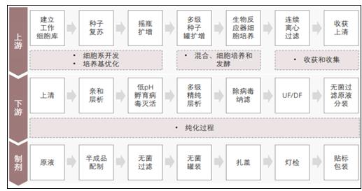 生物药是运用微生物学、生物学、医学、生物化学等的研究成果,从生物体、生物组织、细胞、器官、体液等,综合利用微生物学、化学、生物化学、生物技术、药学等科学的原理和方法制造的一类用于预防、治疗和诊断的制品生物制药生产流程大致可以分为原液制备和制剂制备两部分,原液制备环节又分为上游发酵和下游纯化两部分生物反应器是生物制药的核心设备,该装置利用生物催化剂进行生物技术产品生产,通过控制温度、pH、溶氧(Dissolved Oxygen,DO)、流体动力学、营养物质、代谢产物浓度等参数,为细胞代谢提供一个适宜的生长环境,使细胞能够快速增殖并高效产出具有医药价值的生物药。
