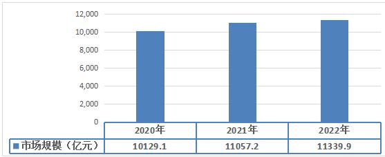 我国皮革行业承压前行,经济运行总体平稳,经济结构持续优化,企业从追求规模效益走向内涵式发展,注重提质增效,行业的竞争力持续提升,2022年我国皮革行业市场规模达到11339.9亿元,同比增长2.56%。