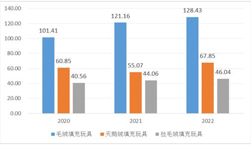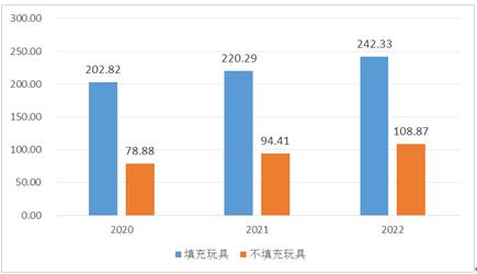 图表:2020-2022年填充毛绒玩具细分产品市场规模(亿元)