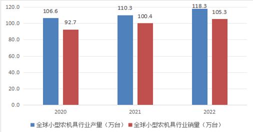图表:2020-2022年全球小型农机具产销量情况