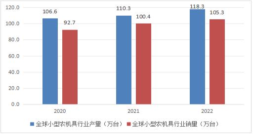 图表:2020-2022年全球小型农机具产销量情况