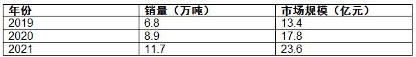 图表:2019-2021年铝镁合金铸件在汽车领域销量和市场规模