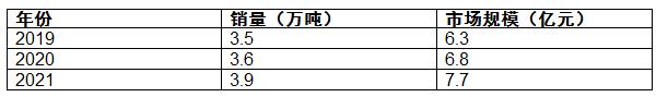 图表:2019-2021年铝镁合金铸件在建材领域销量和市场规模