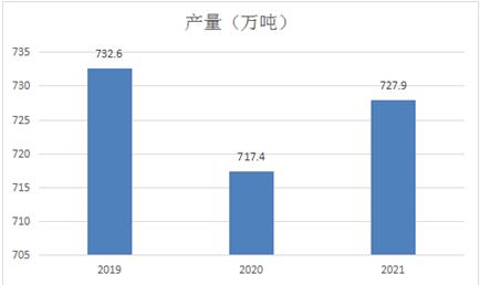 2020年我国软包装行业受新冠疫情影响,部分产能在停工停产影响下,产量由2019年的732.6万吨下降至为2020年的717.4万吨,随着2021年经济快速复苏背景下,产量逐渐恢复至为727.9万吨。