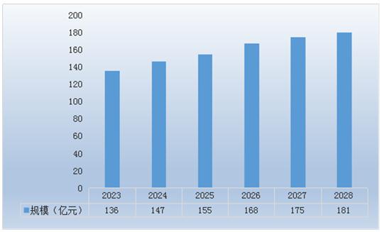 预计中国钢制车轮行业市场规模将从2023年的136亿元上升到2025年的181亿元。