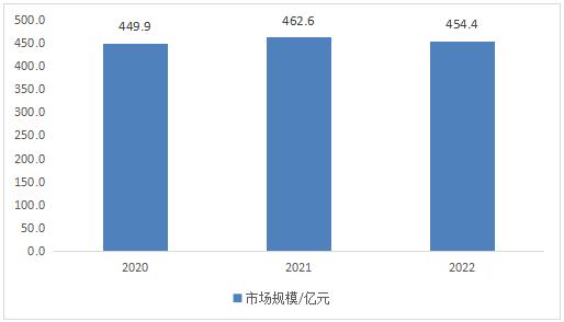 据行业数据显示,2022年国内抑菌无纺布市场供大于求,产品价格呈下降趋势,带动整体市场规模小幅下滑,2022年国内抑菌无纺布市场规模达454.4亿元,同比下降1.77%。