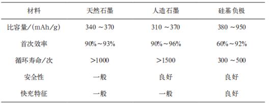 图表:常用石墨系负极材料与硅基负极材料的性能对比