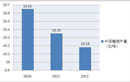 图表:2020-2022年中国粗钢产量(单位:亿吨)