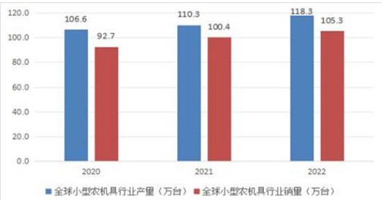 图表:2020-2022年全球小型农机具产销量情况