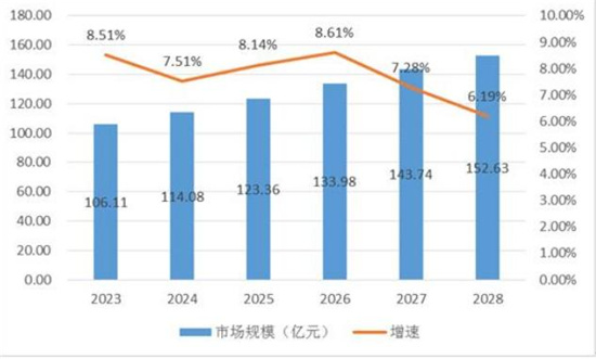 图表:2023-2028年卫星遥感行业市场规模及增速预测