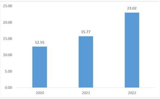 根据汽车销量、高精度地图渗透率、license费用等数据测算,2022年,我国高精度地图的市场规模约为23.02亿元(未包含数据更新的服务费用,下同)。2020和2021年的市场规模分别为12.55亿元和15.77亿元。