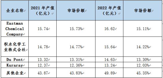 2.1全球市场建筑PVB薄膜主要厂商2021和2022年产量、产值及市场份额