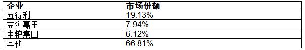 目前小麦深加工行业市场竞争激烈使得产品品质及品牌尤显重要,行业整合进程仍在持续,下游消费市场进一步细分,小麦加工企业加快转型升级进度,目前五得利、益海嘉里、中粮集团三大巨头的加工量约占全国面粉总加工量的30%以上。