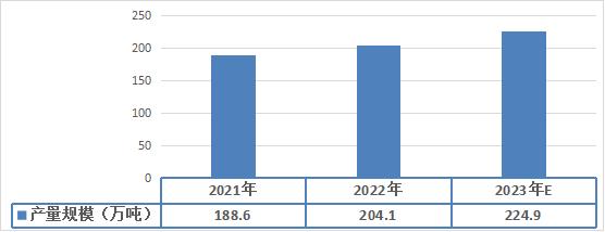 根据中研研究院《2023-2028年中国无水氟化氢行业市场现状调查及未来发展预测报告》分析得知,近年来国内企业仍在抢占配额,对无水氟化氢需求稳步增长,预计2023年无水氟化氢行业产量为224.9万吨,同比增长10.19%。