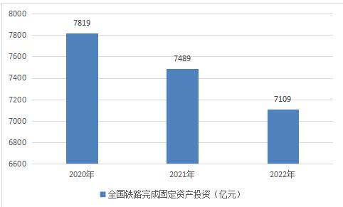 图表:2020-2022年全国铁路完成固定资产投资