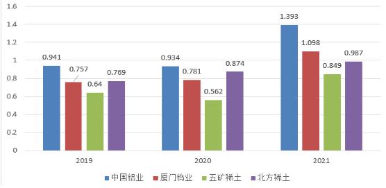 图表:2019-2021年稀土行业代表企业总资产周转率