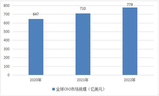 图表:2020-2022年全球CRO市场规模(亿美元)