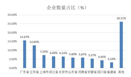 从学生营养餐行业供给企业分布来看,广东省企业数量占比较高,为15.67%,其次为江苏省,占比为12.83%。可见国内营养餐企业分布多分布在沿海及经济较为发达的地区。