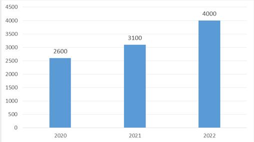 图表:2020-2022年中国无人机行业市场规模(亿元)