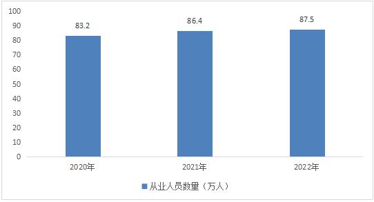 图表:2020-2022年国内连衣裙行业从业人员规模情况