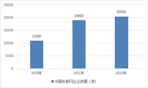 图表:2020-2022年中国车联网企业数量(家)
