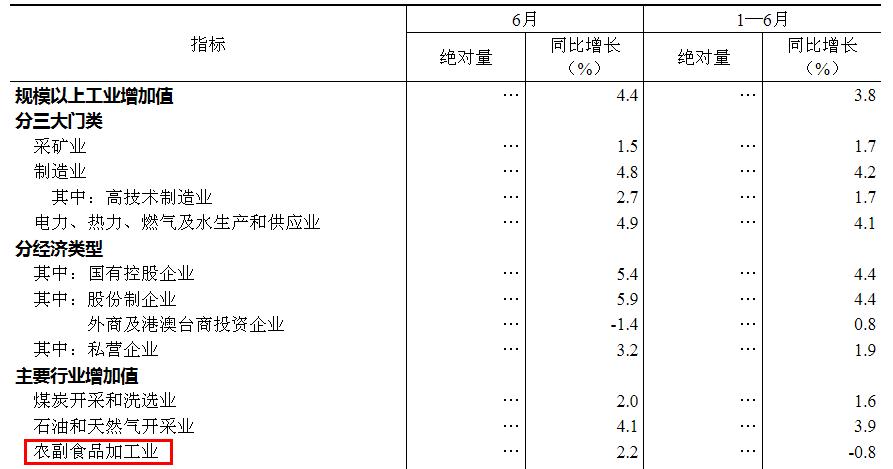 上半年,41个大类行业中有26个行业增加值保持同比增长。其中煤炭开采和洗选业增长1.6%,石油和天然气开采业增长3.9%,农副食品加工业下降0.8%,酒、饮料和精制茶制造业增长0.2%,纺织业下降2.4%,化学原料和化学制品制造业增长7.4%,非金属矿物制品业增长0.4%。
