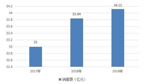 2017年全息投影设备销售额为33亿元,至2019年销售额增长至34.12亿元。