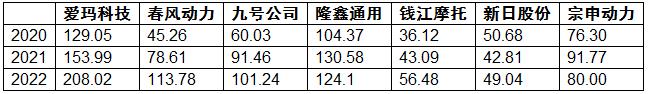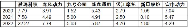 根据企业财报信息,我国电动摩托车行业几家头部企业的营业收入如下表所示: