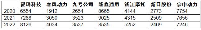 根据企业财报信息,我国电动摩托车行业几家头部企业的从业人员如下表所示: