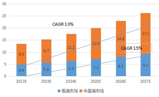 公立医院特需医疗服务的比例不得超过全部医疗服务的10%。相比而言,私立医院在服务定制和定价方面更加宽松。未来随着行业进一步得到发展,预计2022-2027年我国儿科医院行业将以13%的年复合增长率保持较快增长,预计至2027年我国民营儿科医院行业中高端市场规模有望增长至为17.1亿元,低端市场有望增长至9.1亿元。