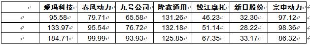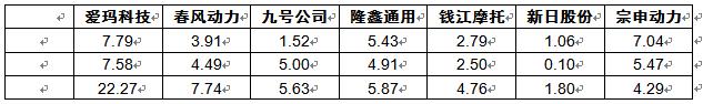 根据企业财报信息,我国电动摩托车行业几家头部企业的营业收入如下表所示: