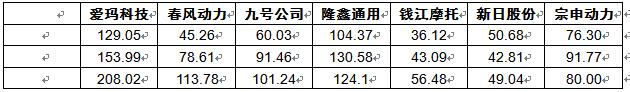 根据企业财报信息,电动摩托车行业几家头部企业的利润总额如下表所示: